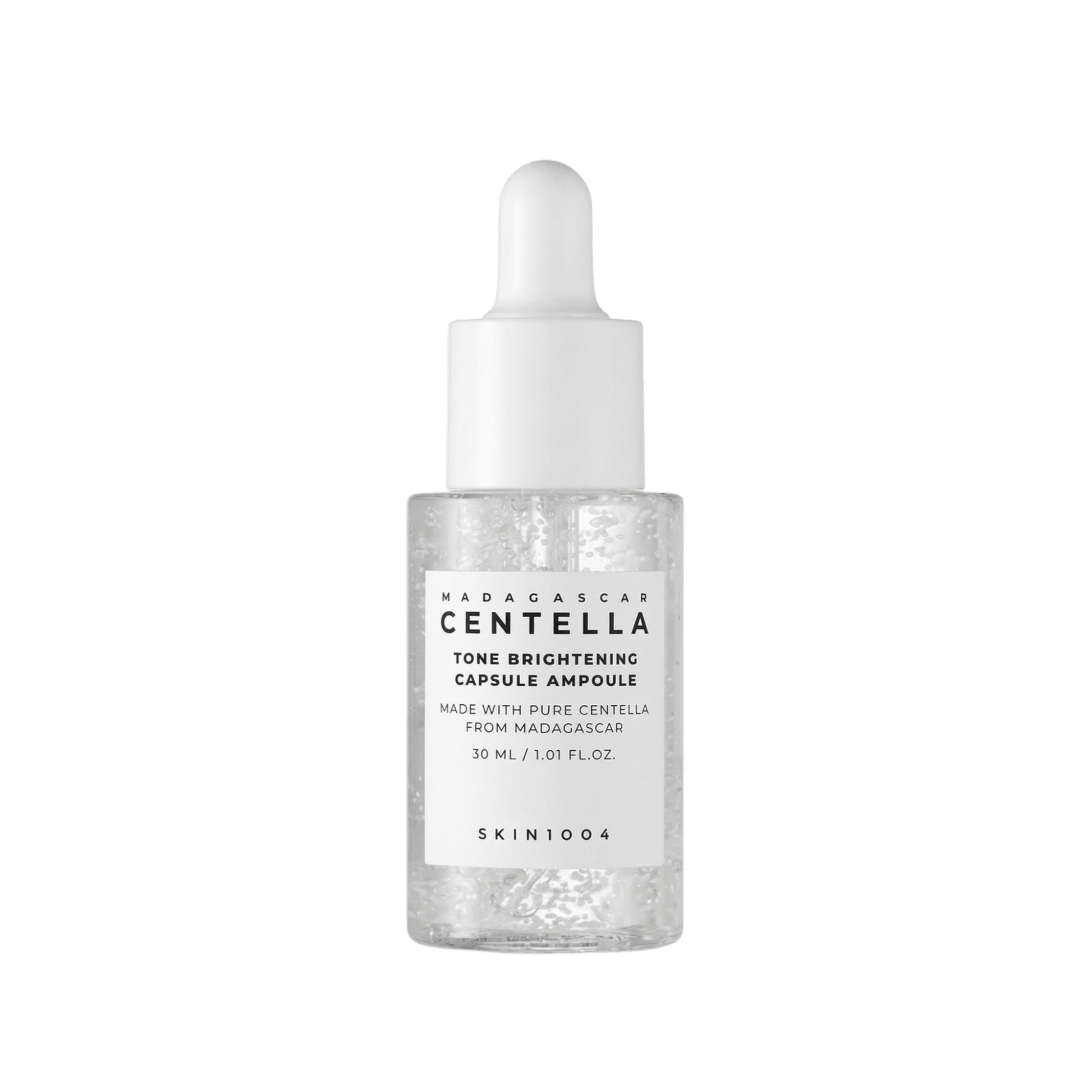 SKIN1004 Madagascar Centella Tone Brightening Capsule Ampoule – tai kasdieniam naudojimui skirta skaistinanti ampulė, sukurta padėti sumažinti pigmentaciją, papilkėjusią odą ir netolygų odos toną. Formulėje naudojamas patentuotas MadeWhite™ kompleksas, kuris apjungia stabilizuotą vitamino C darinį (3-O-etil askorbo rūgštį) su niacinamidu ir traneksamo rūgštimi – ingredientais, kurie aktyviai prisideda prie pigmentacijos mažinimo ir odos skaistinimo didinimo. Sudėtyje esantis azijinės centelės ekstraktas – pasižymi raminančiu ir minkštinančiu poveikiu, mažina sudirginimą ir paraudimą, didina elastingumą ir stiprina natūralų apsauginį barjerą, todėl oda tampa stangri ir švelni. Lengvos esencijos tekstūros ampulė su kapsulėmis greitai įsigeria, drėkina ir palieka odą švelnią bei nelipnią. Tinka visiems odos tipams.
